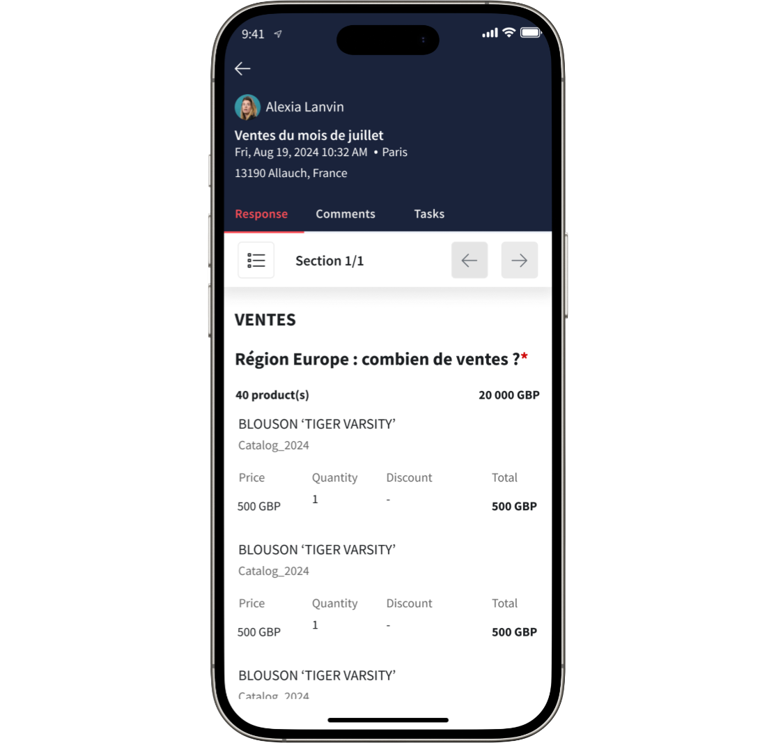 SimpliField est un logiciel facilitant la communication entre le siège et le terrain, permettant aux entreprises de simplifier la gestion des tâches, la communication interne et l’analyse des données. Dans le cadre de mon alternance en tant que UX/UI Designer chez Simplifield, j’ai travaillé avec le Product Owner sur l’amélioration de la gestion des devises pour la fonctionnalité de vente de produits. Cette mise à jour a été développée pour des clients comme Kenzo, BeautyTech (Dior) et Vilore, afin de leur permettre une meilleure gestion des devises pour leurs rapports de vente.